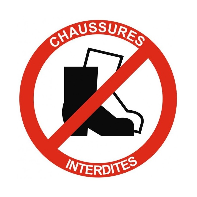 Autocollant chaussures interdit. Adhésif à coller en intérieur ou en extérieur.