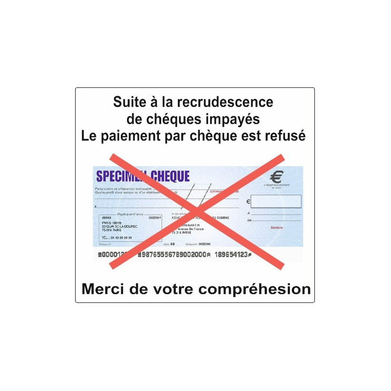 Autocollant Chèques refusés pour la signalétique de votre entreprise, entrepôt, boutique ou magasin.