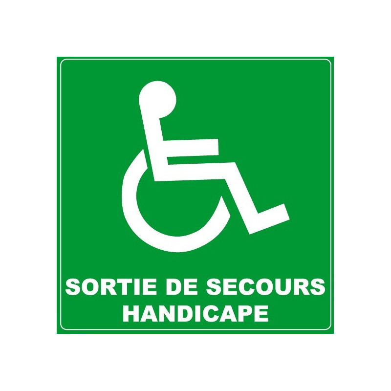 Autocollant protection - sortie de secours handicapé - pour la signalétique de votre entreprise, entrepôt, boutique ou magasin.