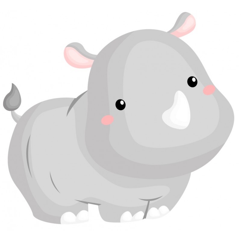 Sticker autocollant rhino bebe déco univers animaux jungle découpé à la forme à coller sur le mur d'une chambre (toutes surfaces lisses et propres).