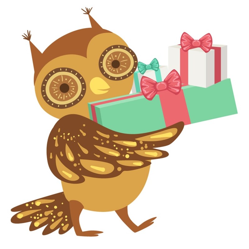 Sticker autocollant hibou apporte cadeaux prédécoupé à la forme à coller sur le mur d'une chambre, voiture, livre ou toutes surfaces lisses et propres.