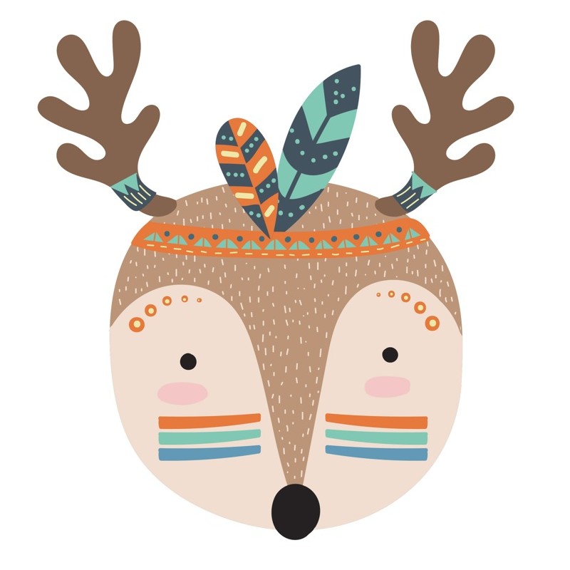 Sticker autocollant renne en indien prédécoupé à la forme à coller sur le mur d'une chambre, voiture, livre ou toutes surfaces lisses et propres.