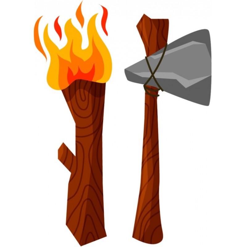 Autocollant hache torche prehistoire à coller dans une chambre ou sur une voiture.