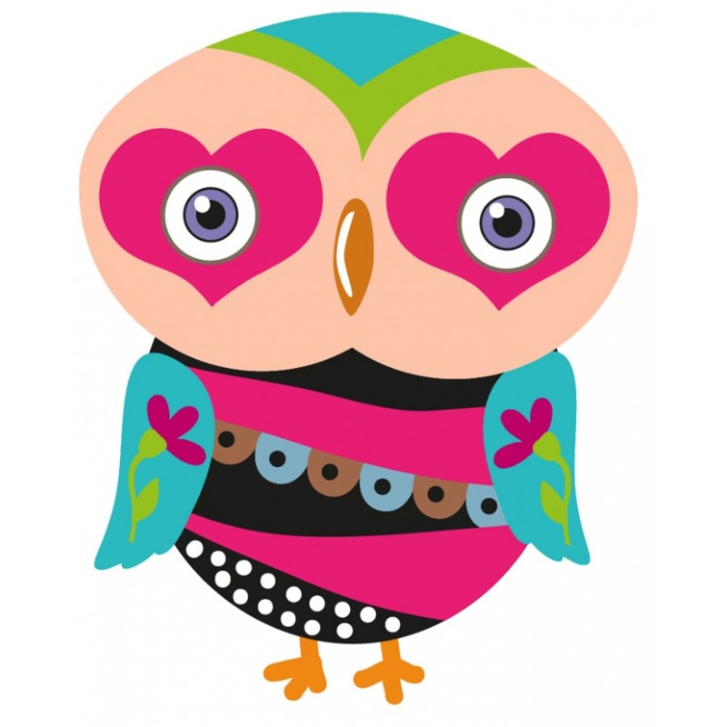 Sticker autocollant hibou surpris rose univers chouette vinyle prédécoupé...