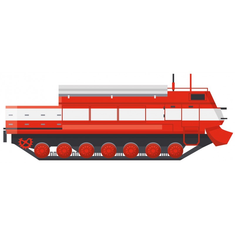 Sticker autocollant camion a chenille dans la deco pompier, pré-découpé à la forme du dessin a coller sur les surfaces lisses, propres comme les murs, métal, vitre, plastique, carrosserie,etc.