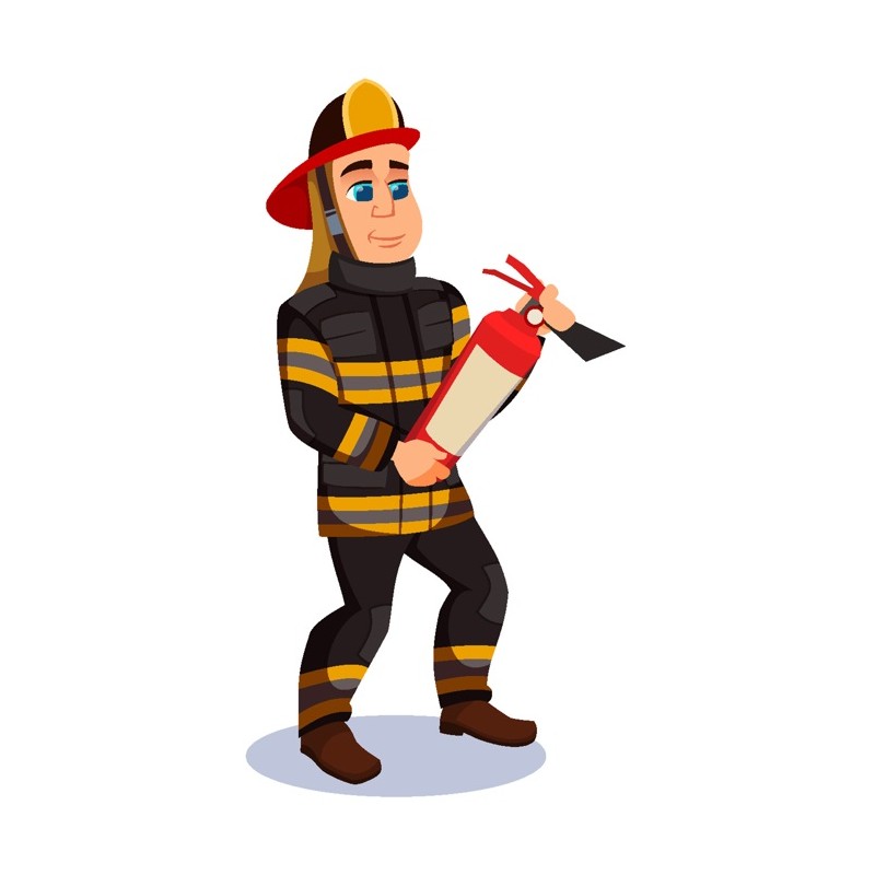 Sticker autocollant pompier avec extincteur dans la deco pompier, pré-découpé à la forme du dessin a coller sur les surfaces lisses, propres comme les murs, métal, vitre, plastique, carrosserie,etc.