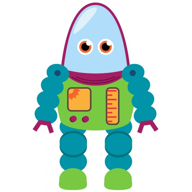 Sticker autocollant robot fillette vert theme robotique pour décorer le mur...