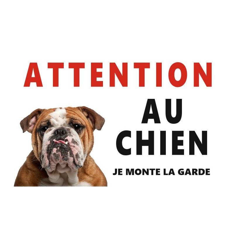 Autocollant attention au chien bulldog à coller sur votre maison ou portail.
