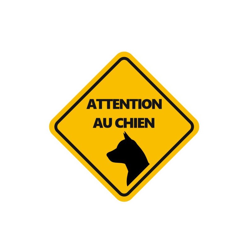 Autocollant jaune attention au chien à coller sur votre maison ou portail.
