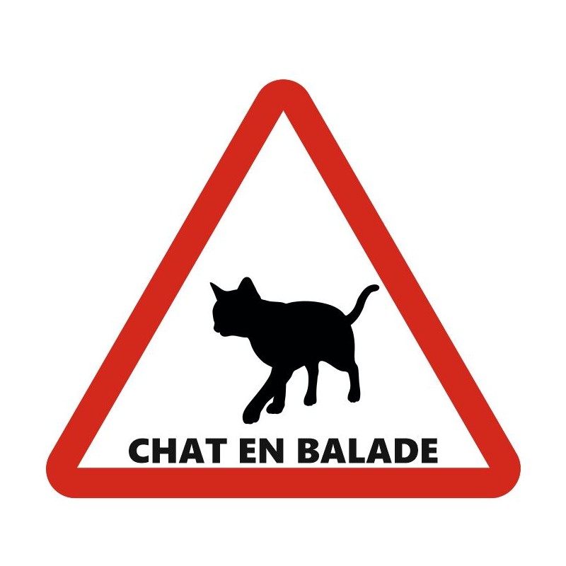 Plaque attention chat en balade à coller sur votre maison ou portail.