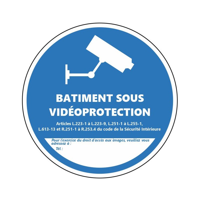 Autocollant rond batiment sous video surveillance à coller dans vos bureaux ou magasins.