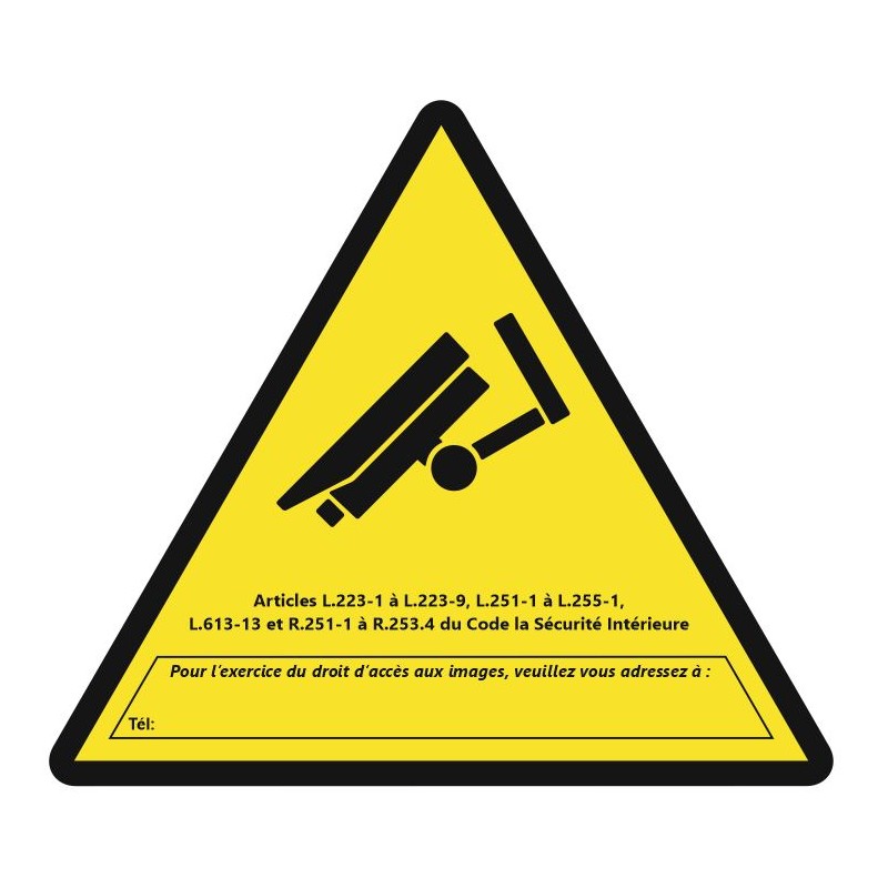 Autocollant videosurveillance triangle à coller dans vos bureaux ou magasins.