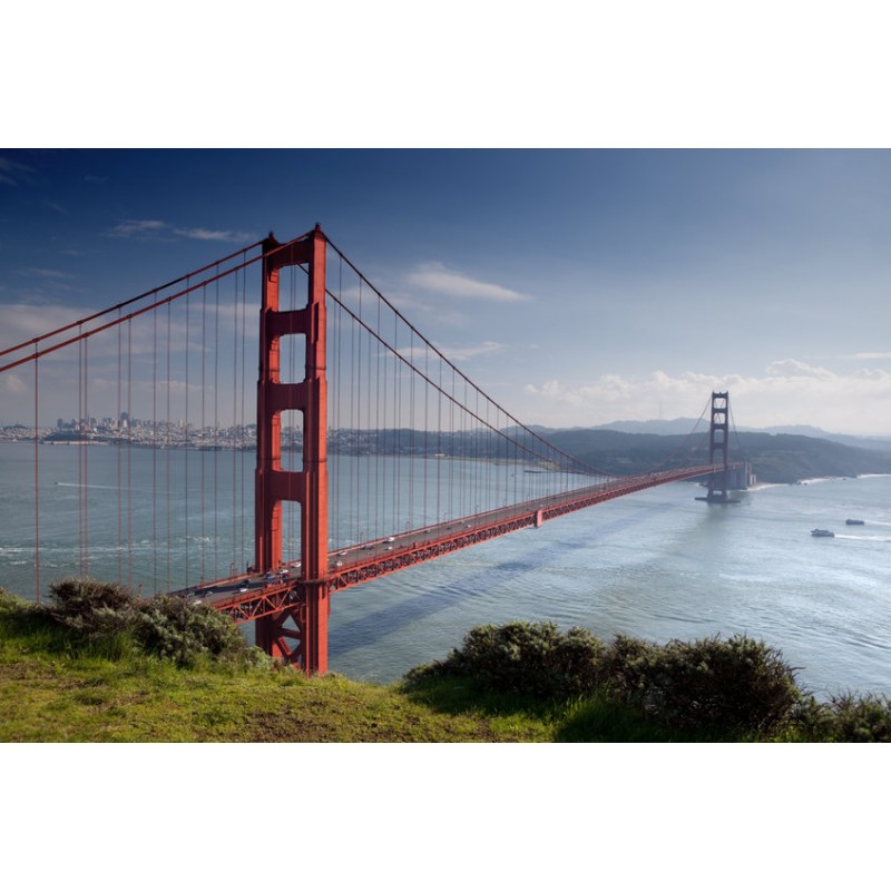 Sticker autocollant golden bridge dans le theme USA, prédécoupé à la forme du visuel, pouvant être collé sur toutes surfaces lisses propres comme les murs, métal, vitre, plastique, etc.