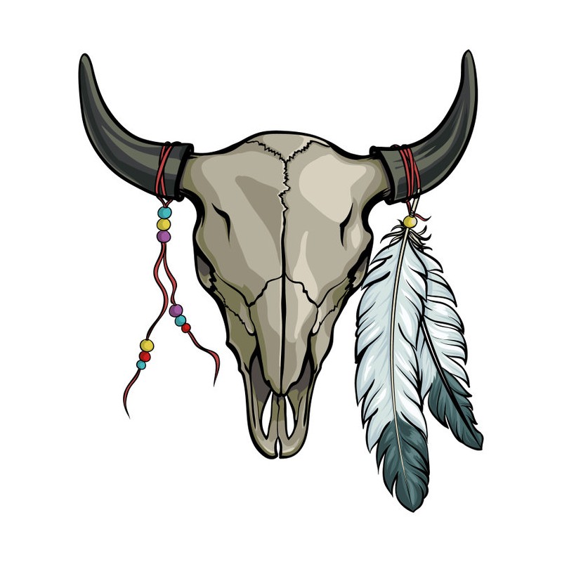 Sticker autocollant crane de buffle dans le theme USA, prédécoupé à la forme du visuel, pouvant être collé sur toutes surfaces lisses propres comme les murs, métal, vitre, plastique, etc.
