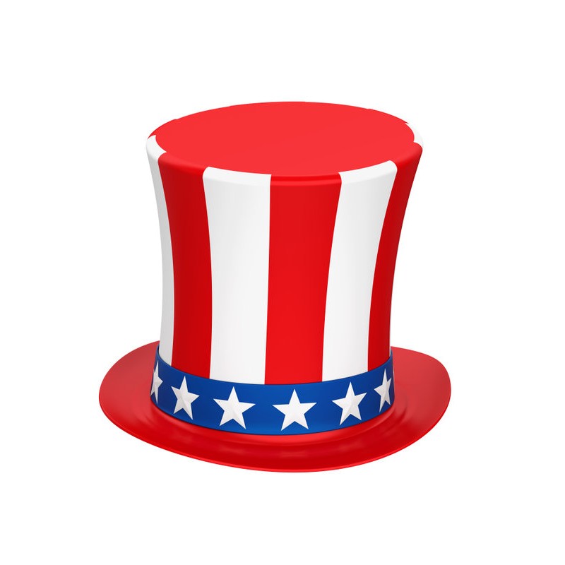 Sticker autocollant chapeau USA dans le theme USA, prédécoupé à la forme du visuel, pouvant être collé sur toutes surfaces lisses propres comme les murs, métal, vitre, plastique, etc.