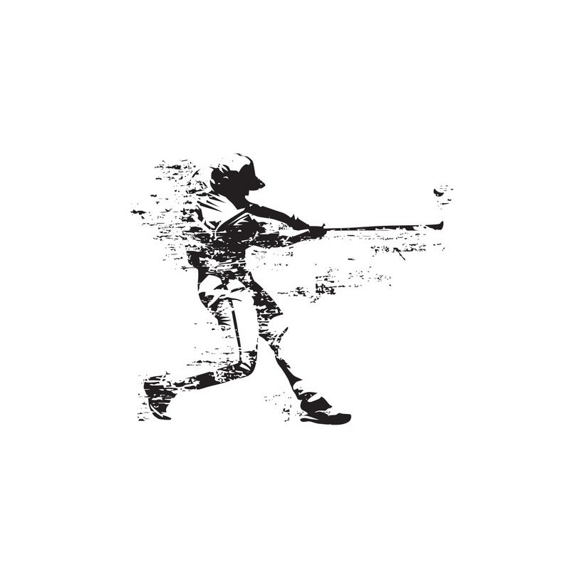 Sticker autocollant joueur de baseball tire dans le theme USA, prédécoupé à la forme du visuel, pouvant être collé sur toutes surfaces lisses propres comme les murs, métal, vitre, plastique, etc.