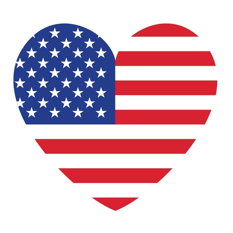 Sticker autocollant coeur drapeau USA dans le theme des USA découpé selon le contour du visuel à coller sur surface lisse et propre (plastique, métal, vitre, etc)