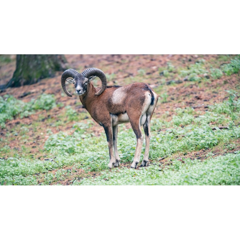 Sticker autocollant bouc sauvage dans le theme animaux de la montagne, prédécoupé à la forme du visuel, pouvant être collé sur toutes surfaces lisses propres comme les murs, métal, vitre, plastique, etc.