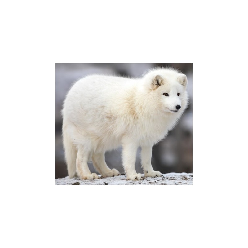 Sticker autocollant loup des neiges blanc dans le theme animaux banquise, prédécoupé à la forme du visuel, pouvant être collé sur toutes surfaces lisses propres comme les murs, métal, vitre, plastique, etc.