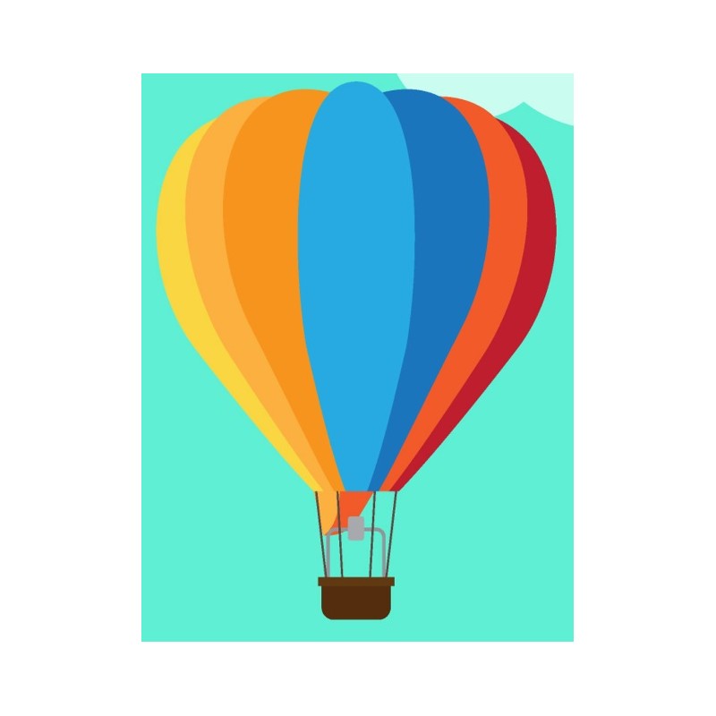 Sticker autocollant montgolfiere de couleurs dans le theme ballon découpé à la forme du visuel pour la déco d'une chambre. A coller sur toutes surfaces lisses (plastique, métal, vitre, etc).