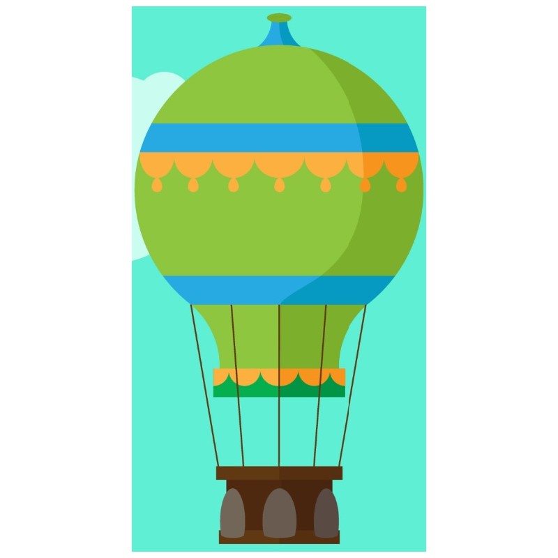 Sticker autocollant montgolfiere vert dans le theme ballon découpé à la forme du visuel pour la déco d'une chambre. A coller sur toutes surfaces lisses (plastique, métal, vitre, etc).