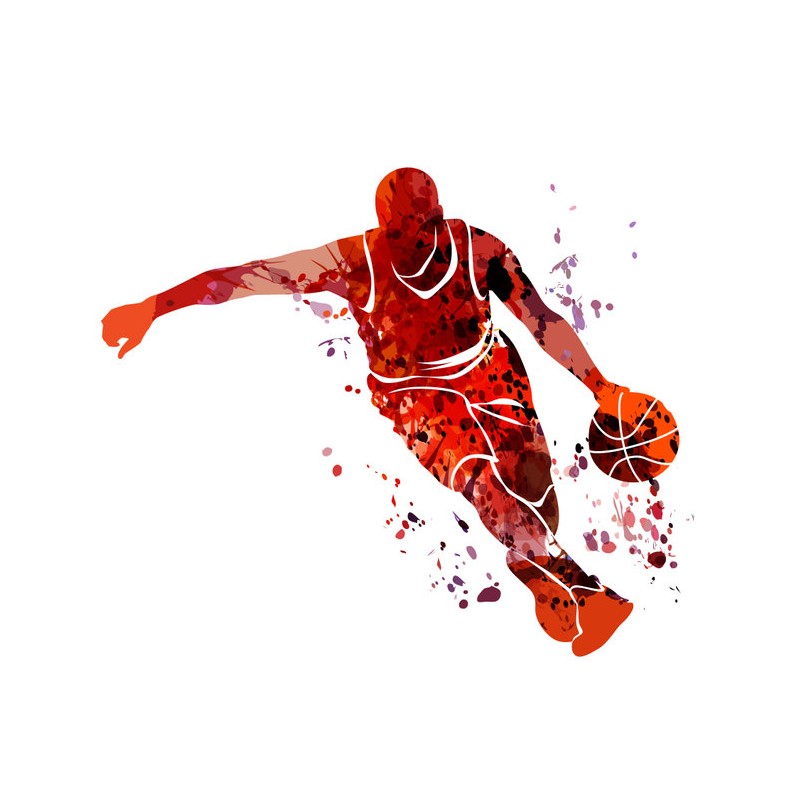 Sticker autocollant basketteur rouge dans le theme basket découpé à la forme du visuel pour la déco. Adhesif à coller sur toutes toutes surfaces lisses (plastique, métal, vitre, etc)