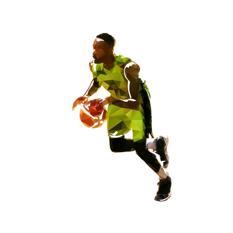 Sticker autocollant basketteur vert dans le theme basket découpé à la forme du visuel pour la déco. Adhesif à coller sur toutes toutes surfaces lisses (plastique, métal, vitre, etc)