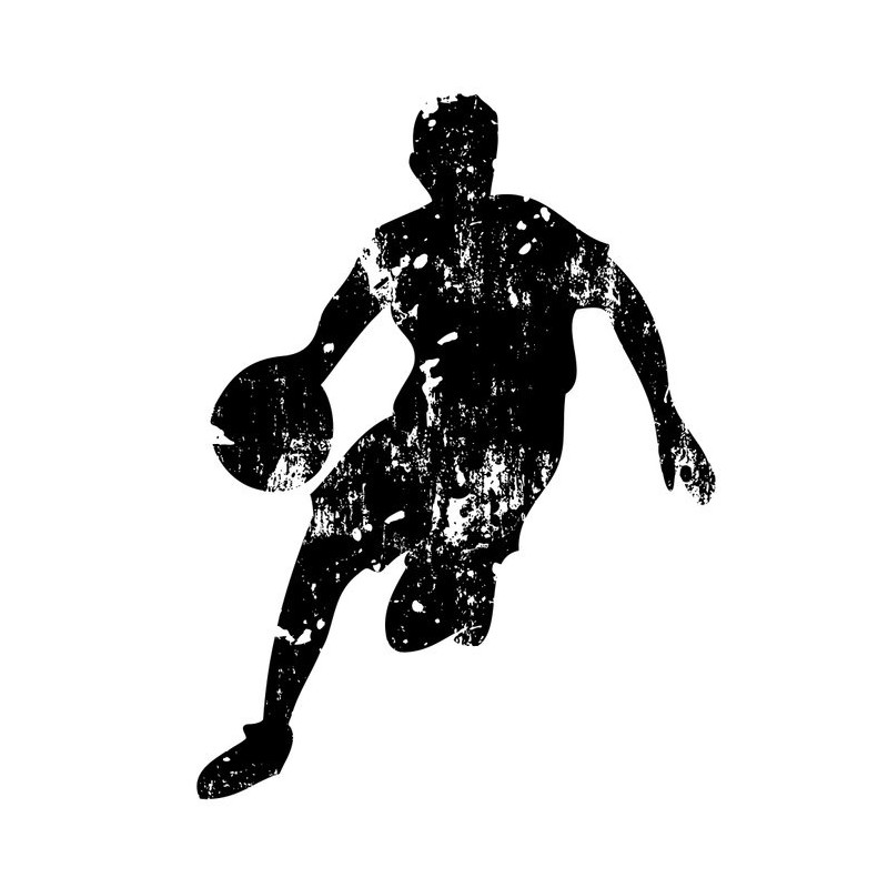 Sticker autocollant basketteur noir dans le theme du basket découpé à la forme du visuel pour la déco. Adhesif à coller sur toutes toutes surfaces lisses (plastique, métal, vitre, etc)