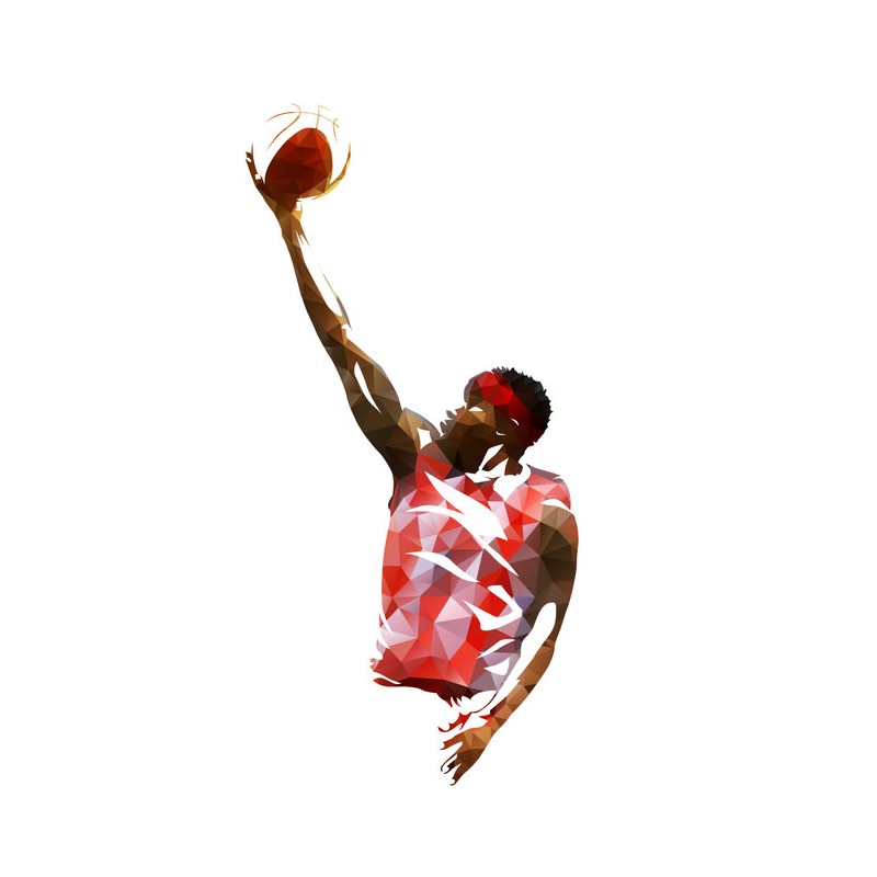 Sticker autocollant basketteur rouge jump dans le theme du basket découpé à la forme du visuel pour la déco. Adhesif à coller sur toutes toutes surfaces lisses (plastique, métal, vitre, etc)