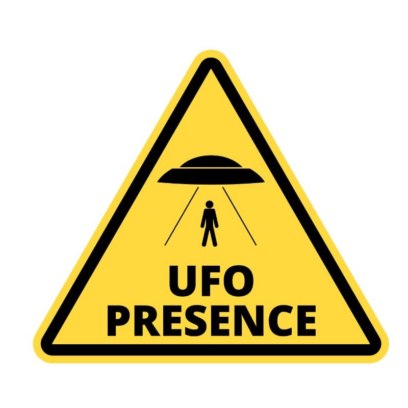 Autocollant panneau danger ufo presence à coller dans une chambre ou sur une voiture.