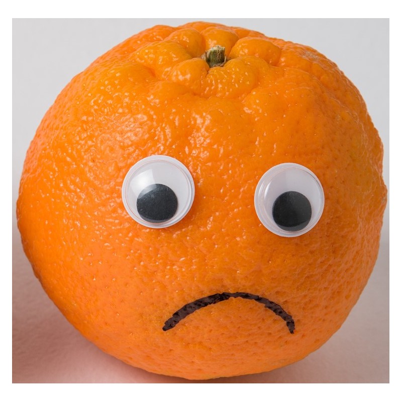 Autocollant fruit rigolo clementine triste à coller dans une chambre ou sur une voiture.