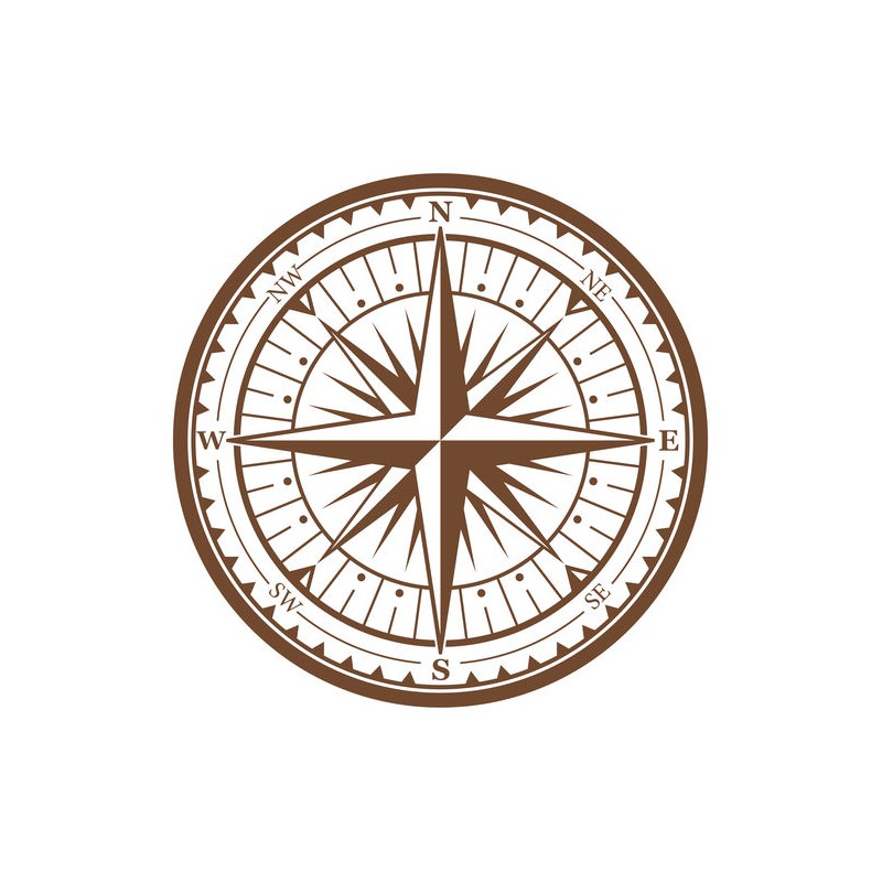 Autocollant boussole marron à coller dans une chambre ou sur une voiture.
