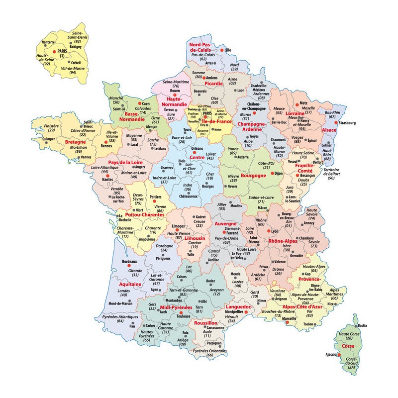 Autocollant carte de France regions à coller dans une chambre ou sur une...