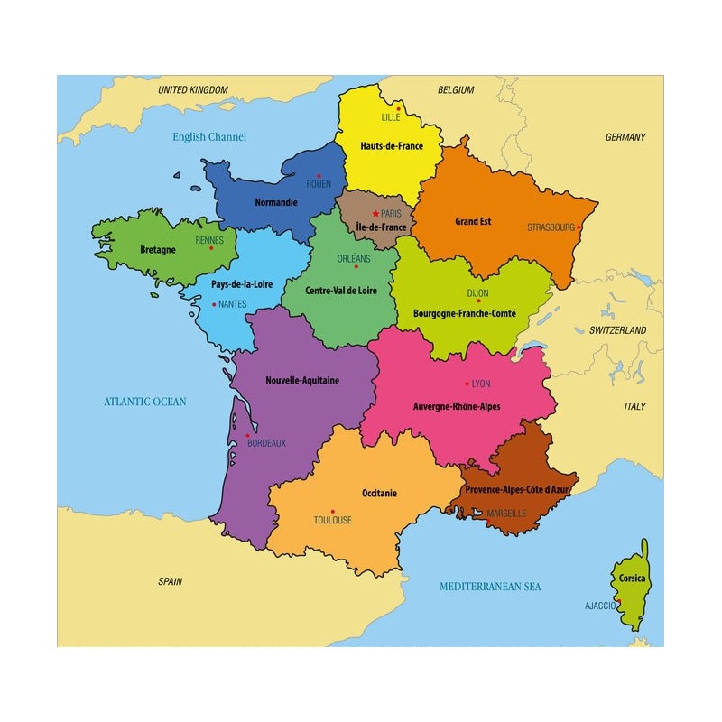 Autocollant carte de France regions à coller dans une chambre ou sur une...