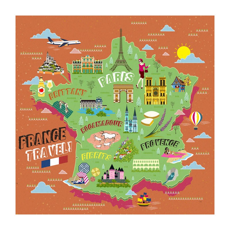 Autocollant carte de France monuments enfant à coller dans une chambre ou sur...