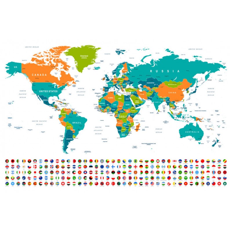 Autocollant planisphere drapeau à coller dans une chambre ou sur une...