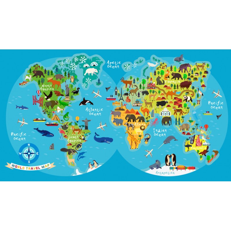 Autocollant carte monde enfant à coller dans une chambre ou sur une voiture....