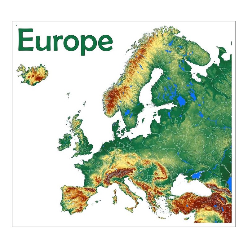 Autocollant mural europe carte relief à coller dans une chambre ou sur une voiture.