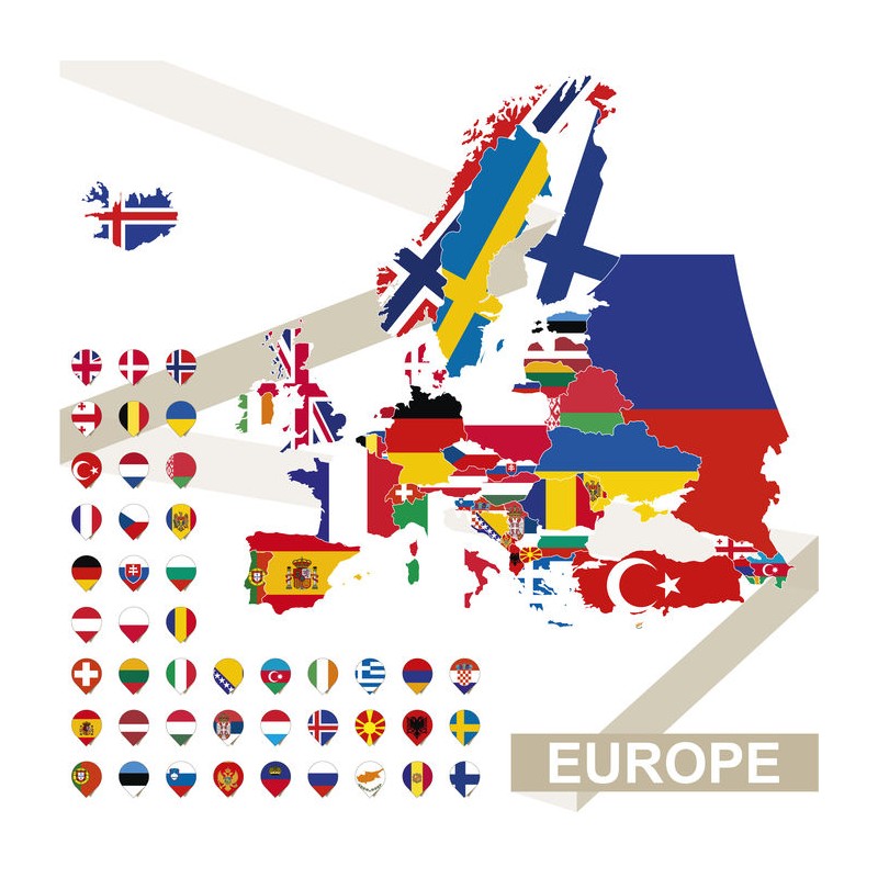 Sticker mural europe carte drapeau à coller dans une chambre ou sur une...