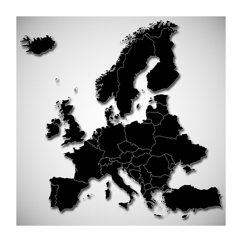 Stickers mural europe carte noir à coller dans une chambre ou sur une voiture.
