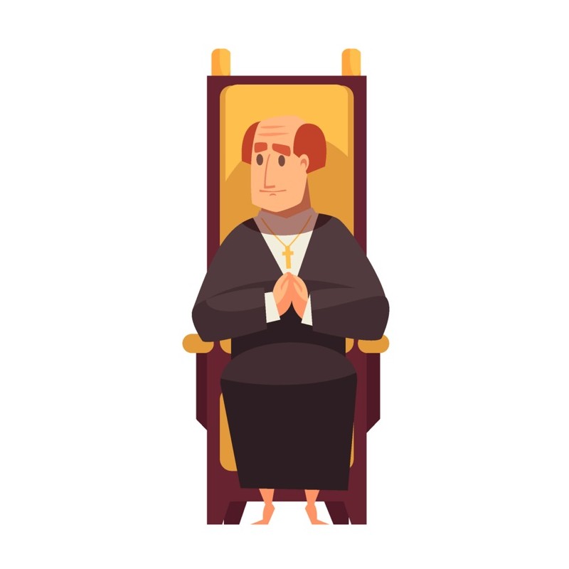 Sticker autocollant cure assis sur trone dans le theme chateau. Adhesif mural prédécoupé suivant le contour du visuel à coller sur surface lisse et propre (plastique, métal, vitre, etc)