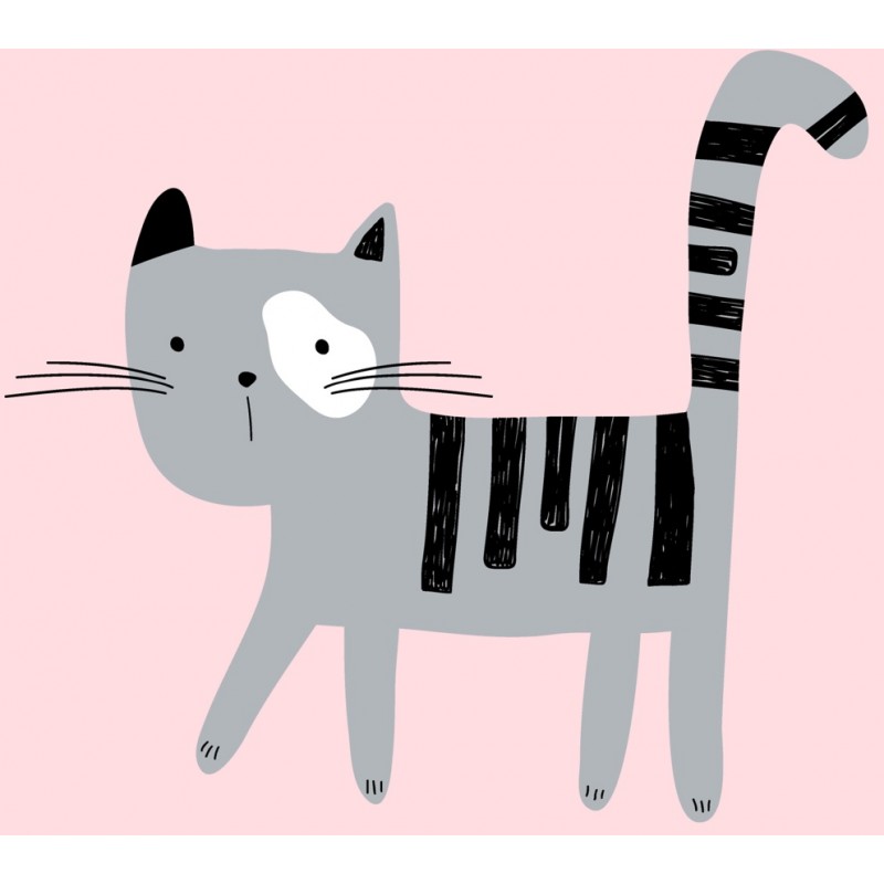 Sticker autocollant chat gris joue prédécoupé à la forme à coller sur le mur...