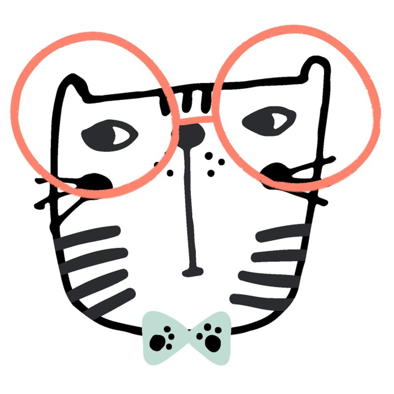 Sticker autocollant chat a lunette prédécoupé à la forme à coller sur le mur d'une chambre, voiture, livre ou toutes surfaces lisses et propres.