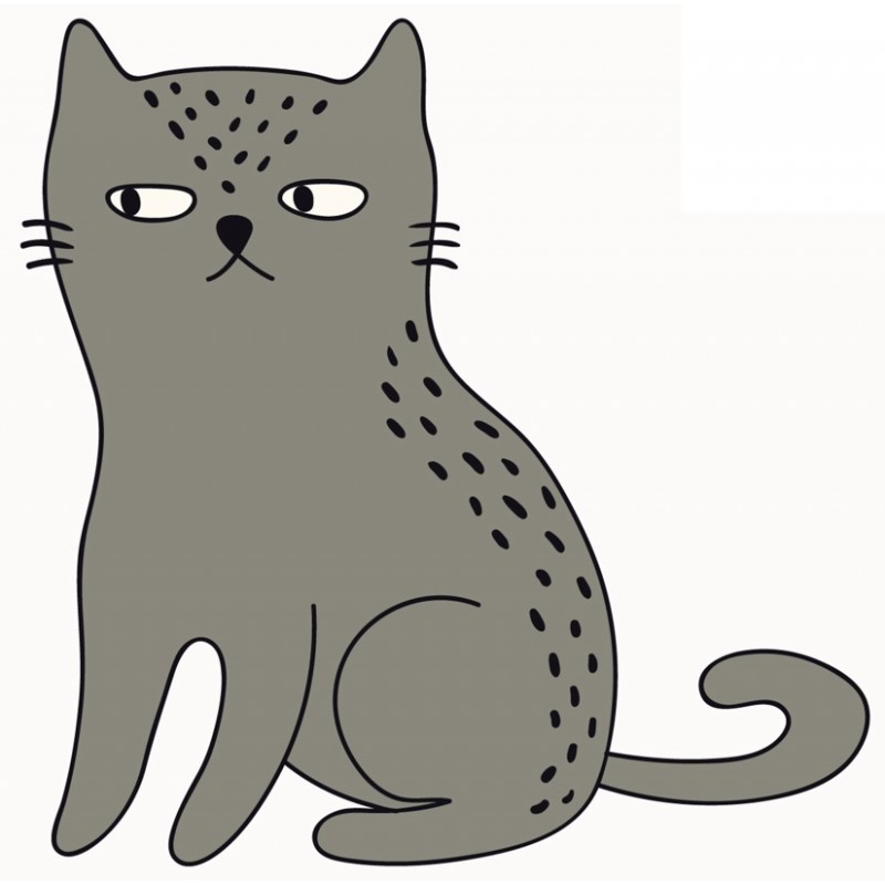 Sticker autocollant chat gris joue prédécoupé à la forme à coller sur le mur...