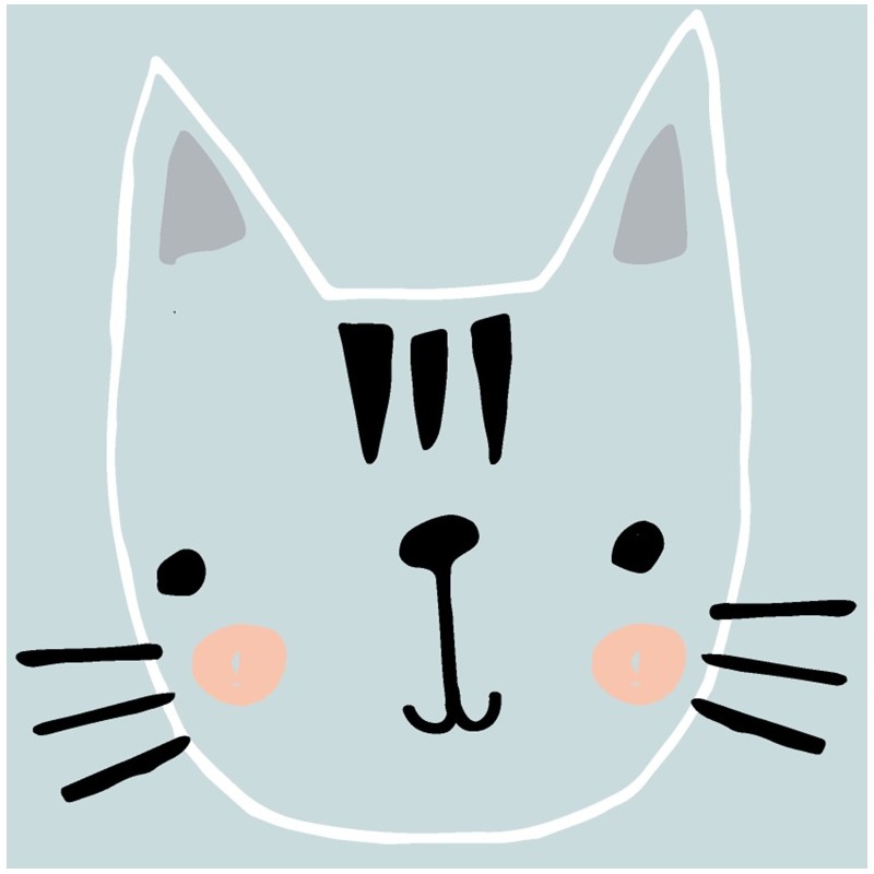 Sticker autocollant chat gris joue prédécoupé à la forme à coller sur le mur...