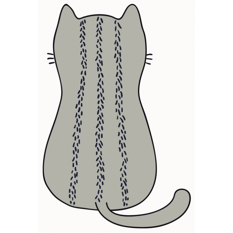 Sticker autocollant chat gris joue prédécoupé à la forme à coller sur le mur...