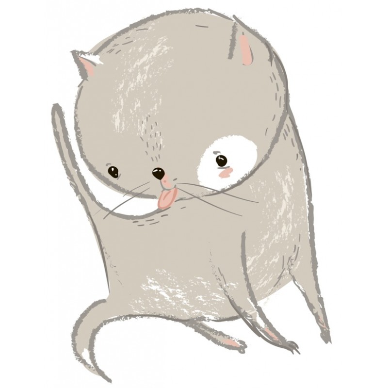 Sticker autocollant chat gris joue prédécoupé à la forme à coller sur le mur...