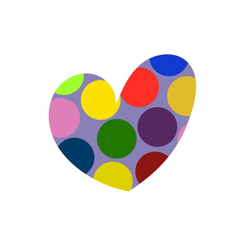 Sticker autocollant coeur pois couleur dans le theme des coeurs découpé à la forme du visuel pour la déco d'une piece de vie. A coller sur toutes surfaces lisses (plastique, métal, vitre, etc).