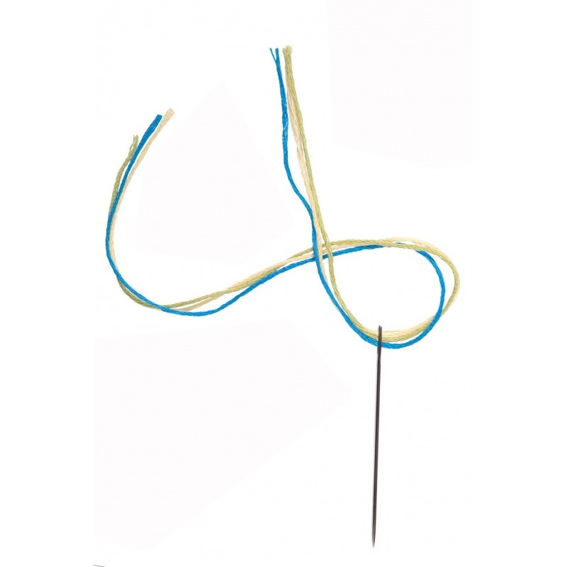 Sticker couture fil jaune bleu aiguille pour votre déco de vitrine ou sticker murale.