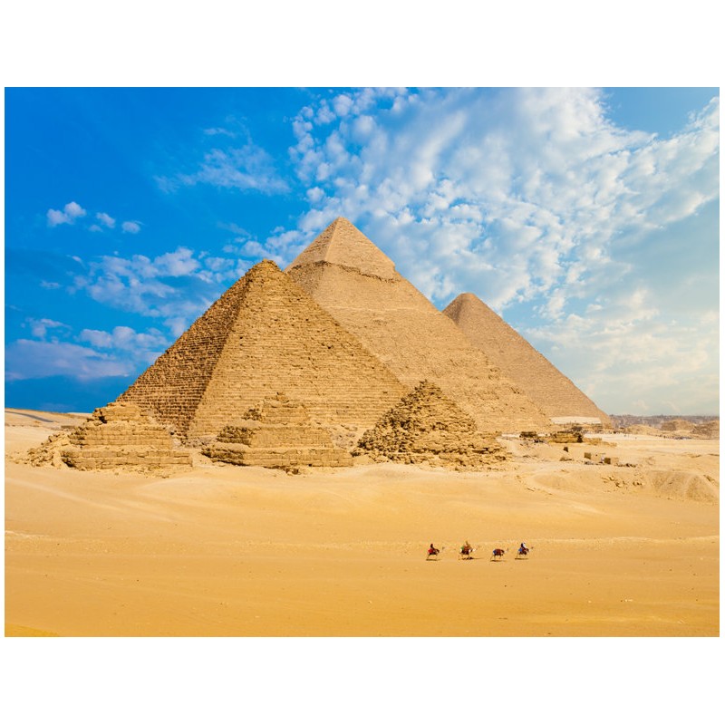 Sticker autocollant pyramide ciel bleu dans le theme de l'egypte. Adhesif déco prédécoupé à la forme du visuel, à coller sur surfaces lisses comme les murs, métal, vitre, plastique, etc.